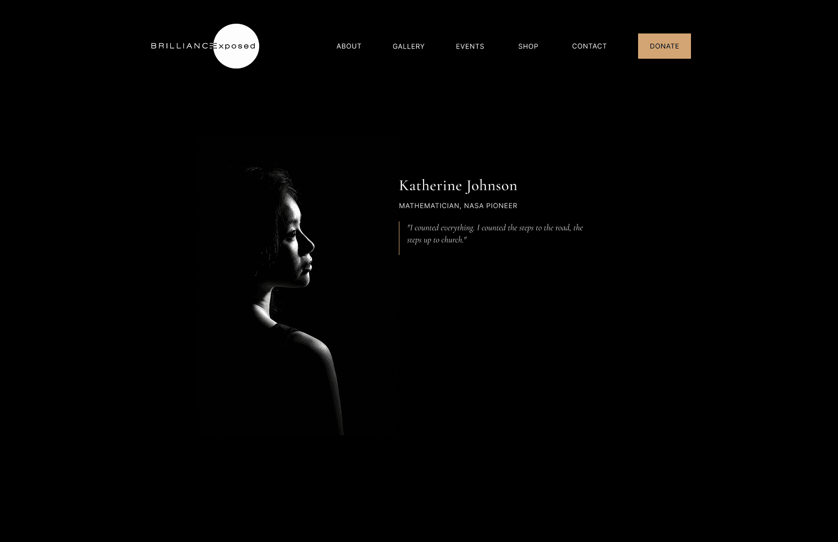 Brilliance Exposed had museum commitments, a Tiffany & Co. sponsorship, and a growing collection of powerful portraits and interviews — but no working website. The previous site was down and inaccessible. We weren't redesigning anything; we were building from zero. The core design challenge: how do you create a digital experience that carries the emotional weight of a physical photographic exhibition — while supporting storytelling, merchandise, event promotion, and donations in one cohesive platform?