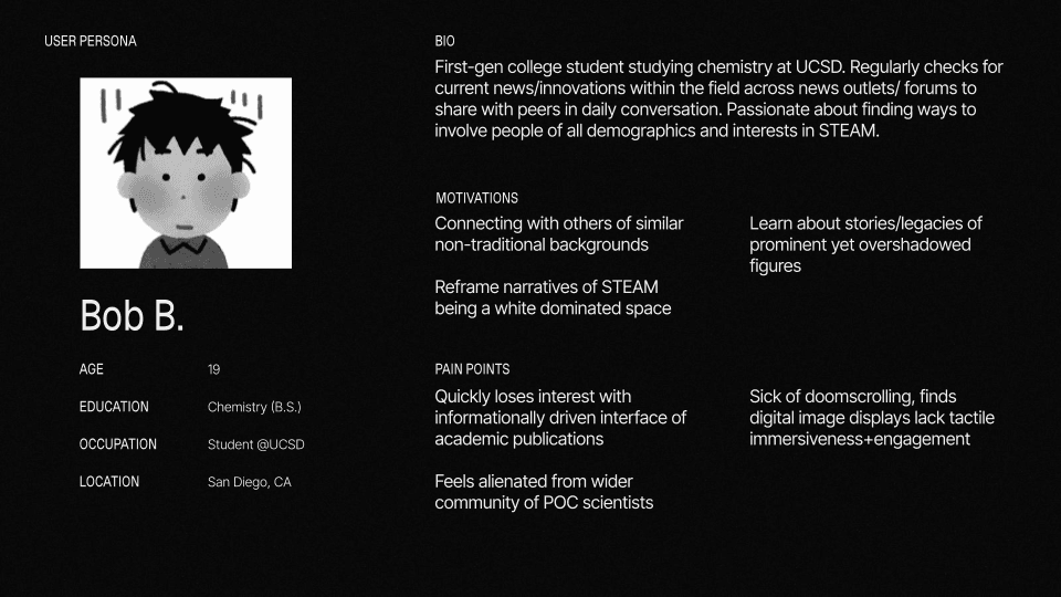We conducted two targeted audits. The first analyzed five traditional exhibition sites — documenting navigation patterns, image presentation strategies, and donation flows. The second examined five innovative immersive experiences — mapping how they used video, motion, and storytelling-driven layouts to deepen engagement. The key insight across all 10: art-first layouts with minimal UI chrome, high-resolution imagery as primary content, and purposeful interactivity that served the narrative rather than decorated it. No competitor was combining portraiture, video interviews, and community storytelling in a single cohesive digital experience. That gap became our design opportunity.